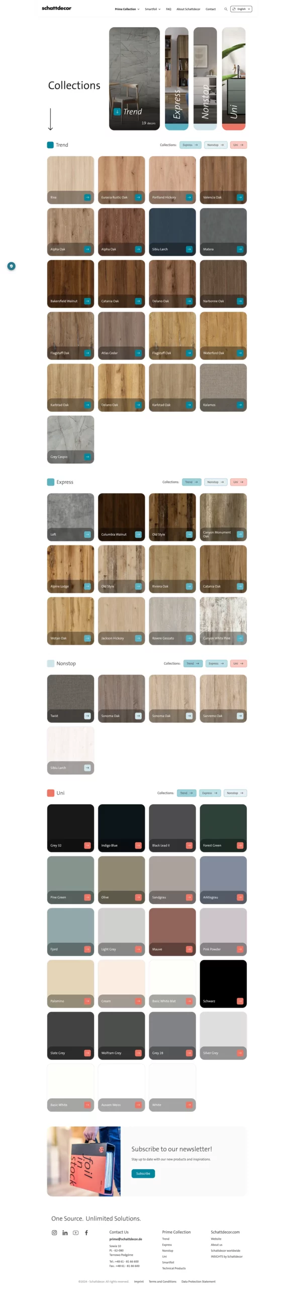 Schattdecor, a global leader in decorative paper and finish foil production, approached me with the challenge of refreshing their Prime collection website. The existing site, limited to presenting a PDF catalog, fell short of today's user experience standards, prompting action.